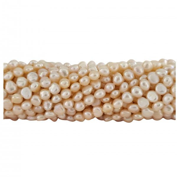 Filo di Perle di fiume irregolari (circa 90 pezzi), con foro centrale stretto, 4x5 mm. CIRCA, colore Bianco Beige